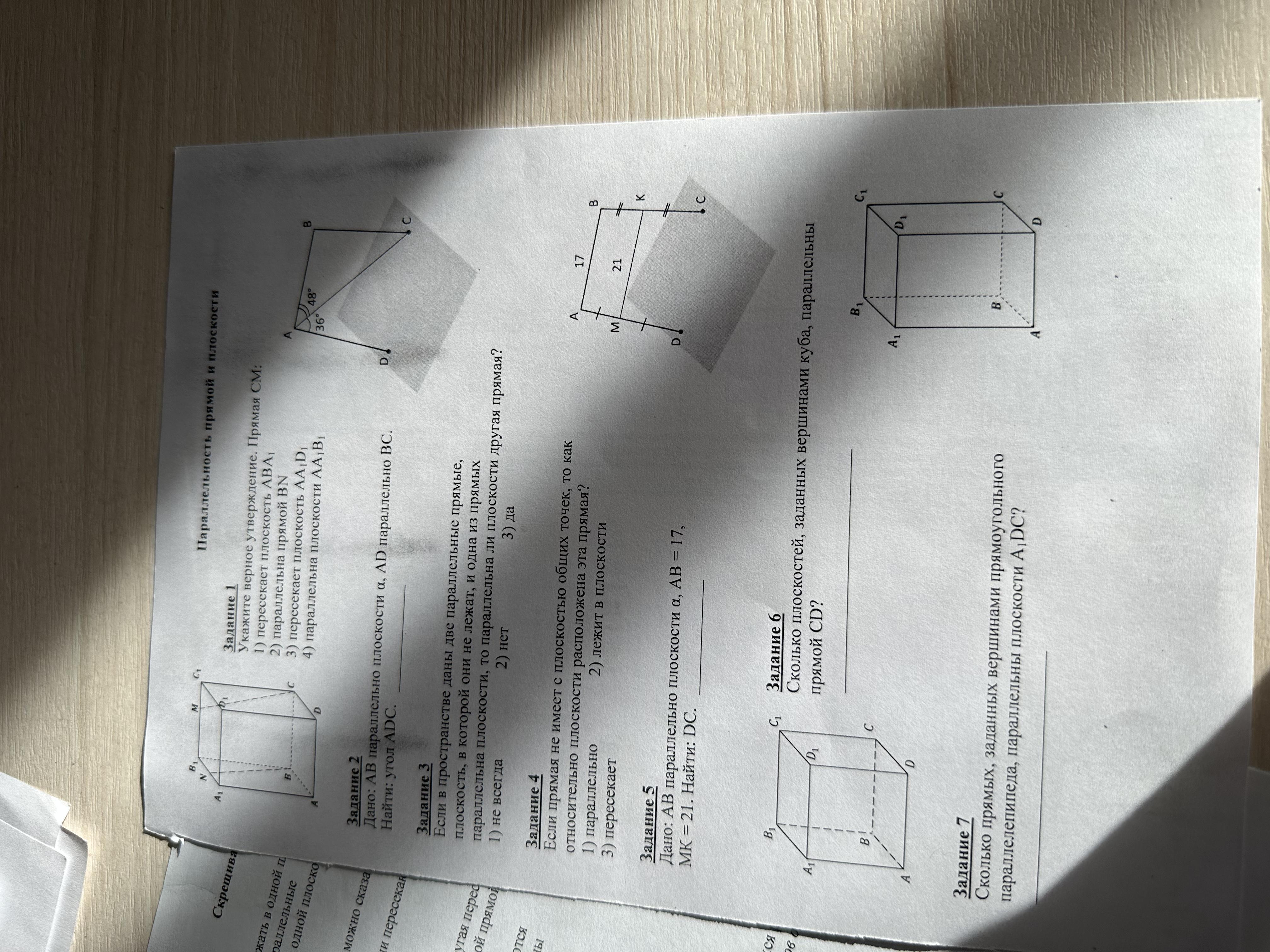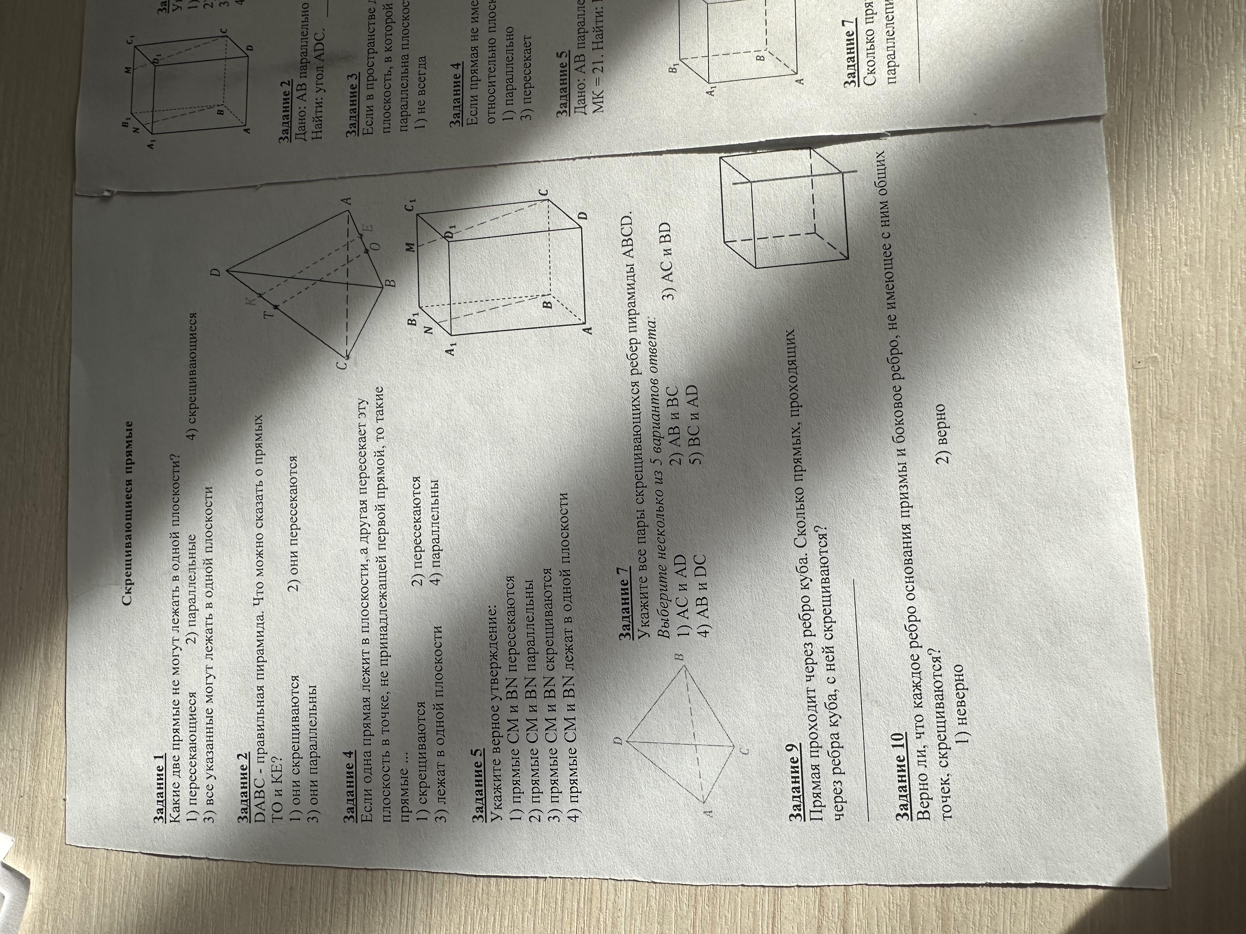 70 БАЛЛОВ Геометрия, темы параллельность прямой и плоскости и тема скрещивающиеся прямые, 10 класс. Два теста на фотографиях, решите пожалуйста
