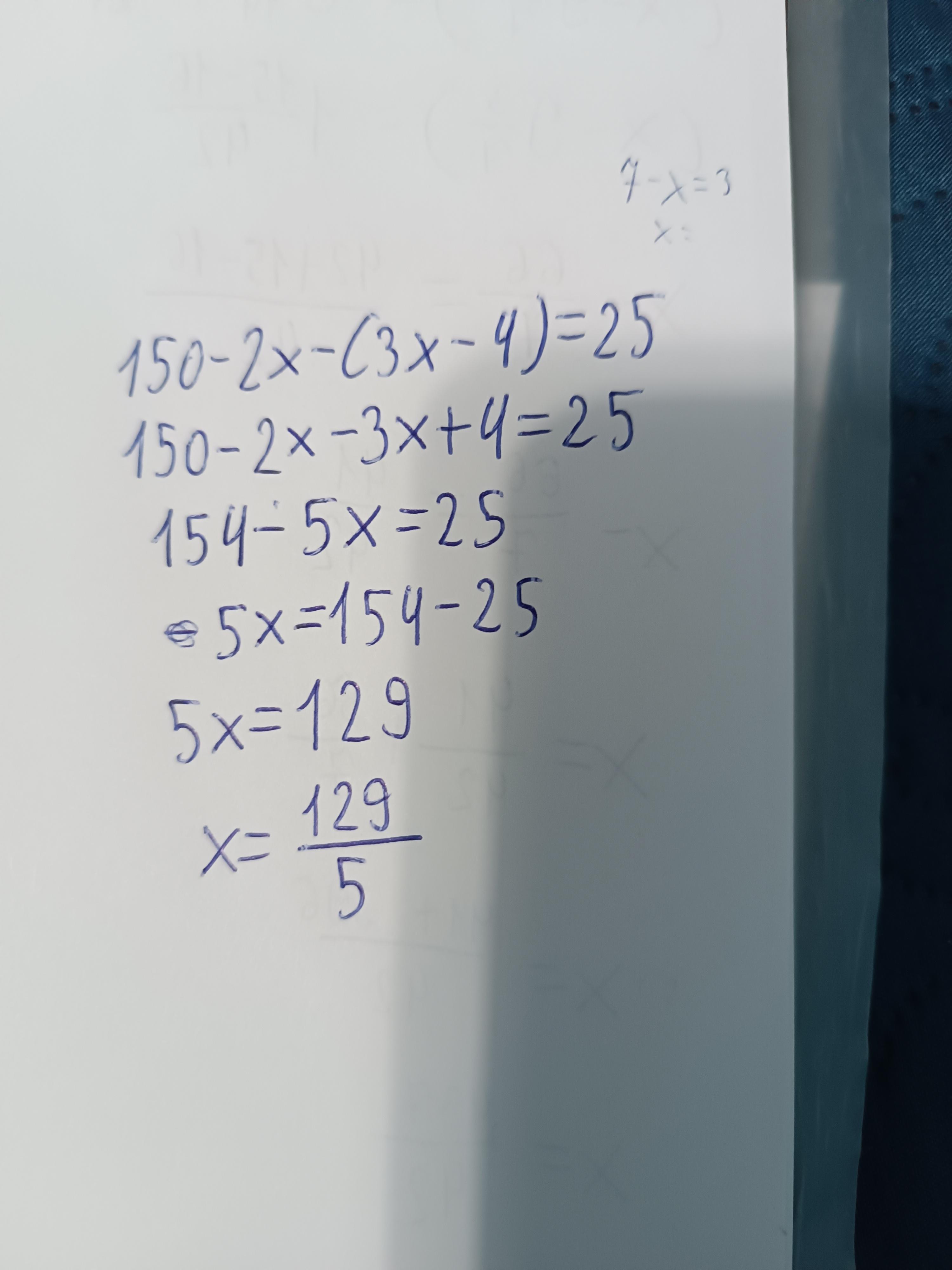 на початку розкрийте дужки, потім зведіть подібні доданки,(х з х,а прості числа з простими числами)потім переносиш +4 на іншу сторону,і обчислюєш просте рівняння