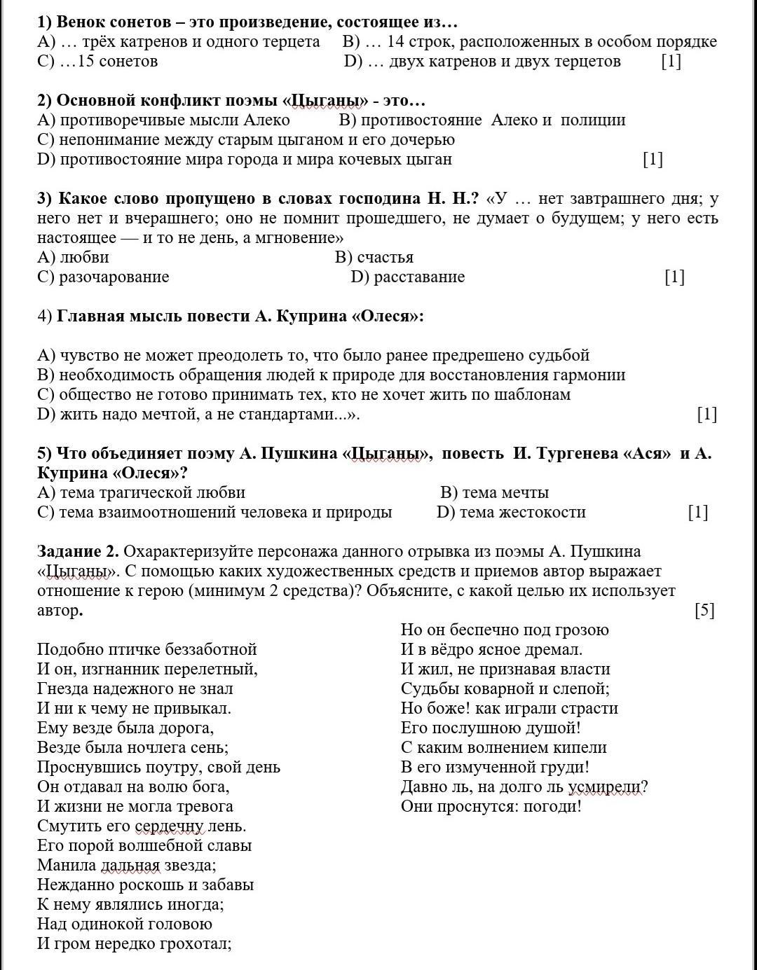 Задание 2. Охарактеризуйте персонажа данного отрывка из поэмы А. Пушкина «Цыганы». С помощью каких художественных средств и приемов автор выражает отношение к герою (минимум 2 средства)? Объясните, с какой целью их использует автор.