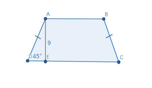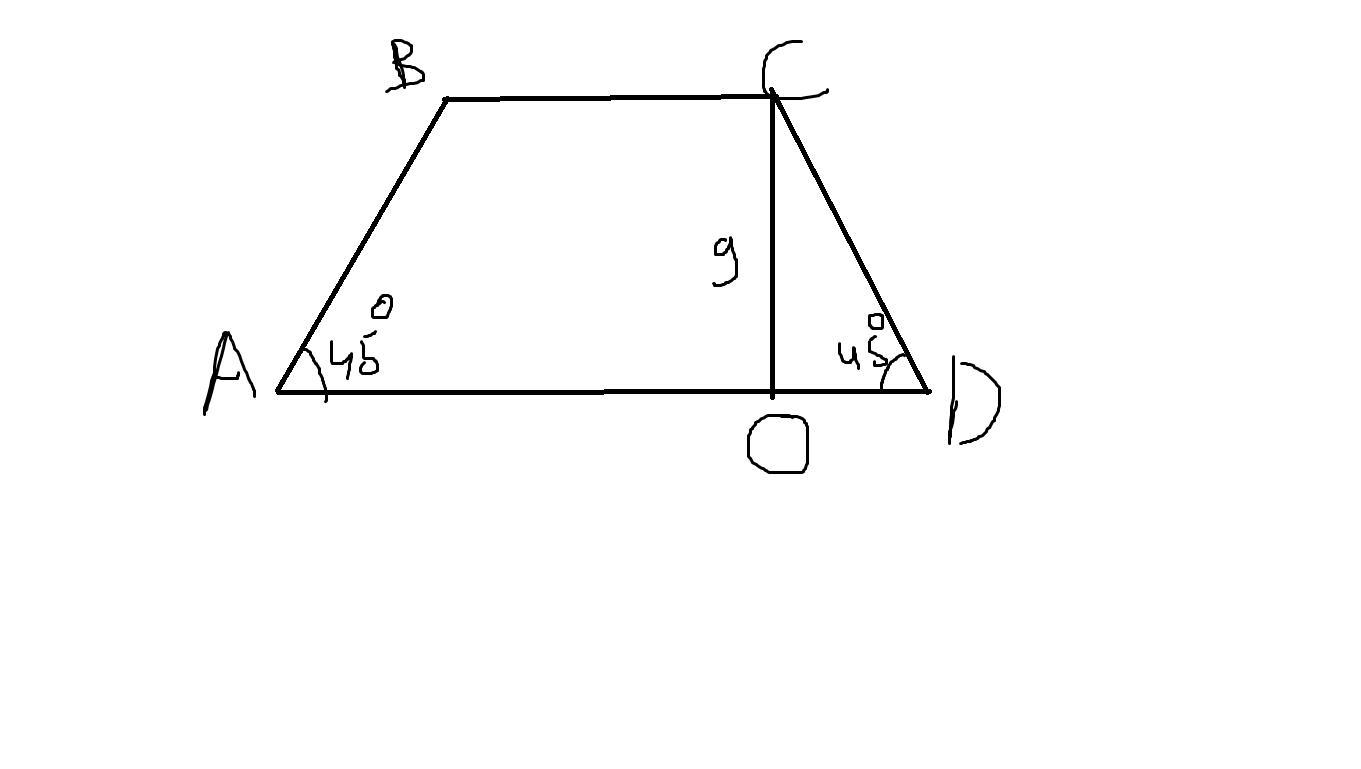 3. Острый угол равнобедренной трапеции равен 45°, высота 9 дм, а сумма оснований 30 дм, - Найдите длины оснований трапеции.