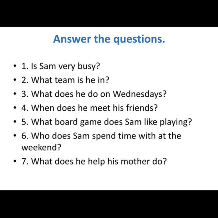 My friend Sam is a very busy person. When he isn't doing his homework or studying he is out having quite a lot of activities.