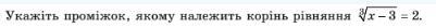 Для определения промежутка, к которому относится корень уравнения x – 3 = 2 в степени 3, сначала решим уравнение.