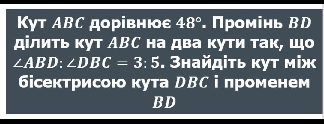 Тепер ми знаємо, що кут між бісектрисою кута DBC і променем BD дорівнює половині кута LDBC, оскільки бісектриса ділить кут навпіл: