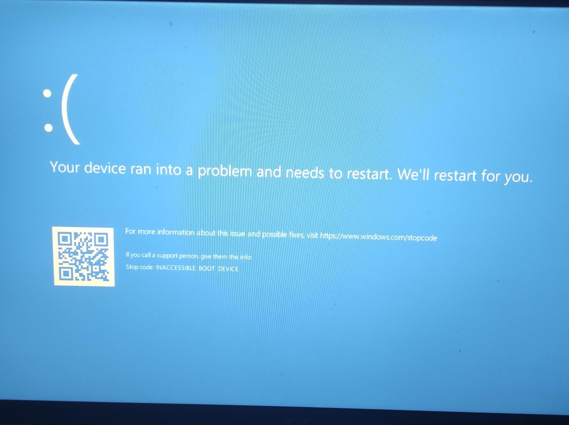 Внизу есть Stop Code: INACCESSIBLE_BOOT_DEVICE, посмотри в интернете решение проблемы.