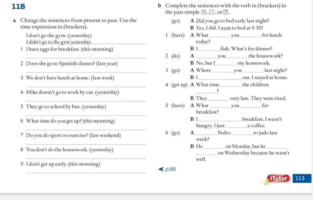 а) 1. I had eggs for breakfast this morning.
