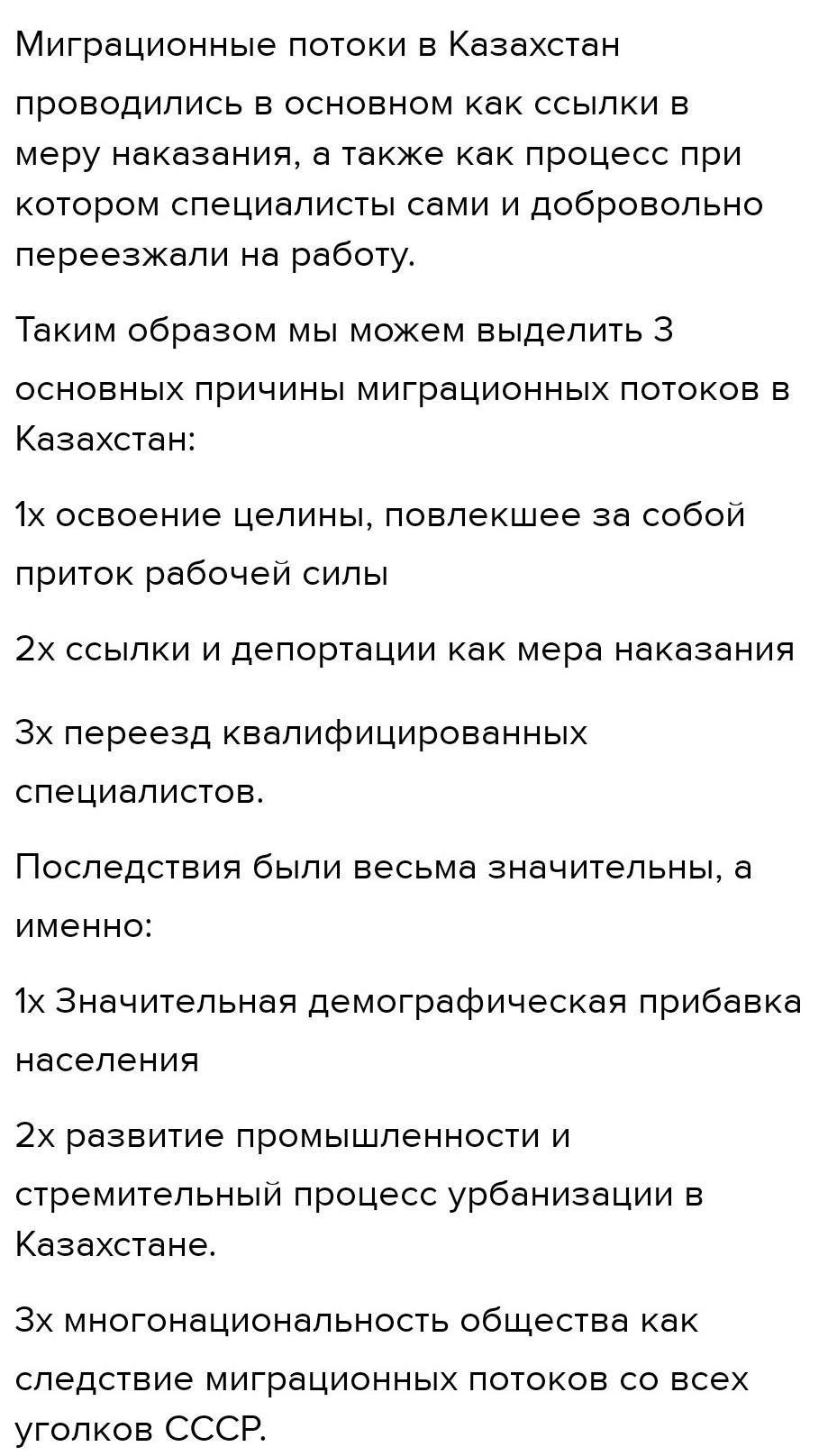 Задание 4. Объясните последствия миграционных потоков в 50-60 годы XX века в Казахстане