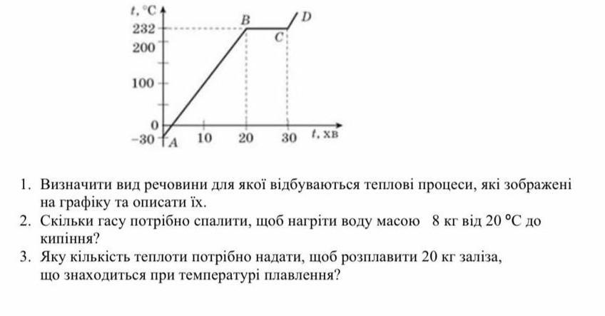 1) Від точки А до точки Б у тіла змінюється темпетатура, воно нагрівається на 202 градуси за 20 хвилин. від точки Б до точки С у тіла не змінюється температура, з ним нічого не відбуається. Від точки С до точки Д у тіла збільшується температура, воно плавиться.