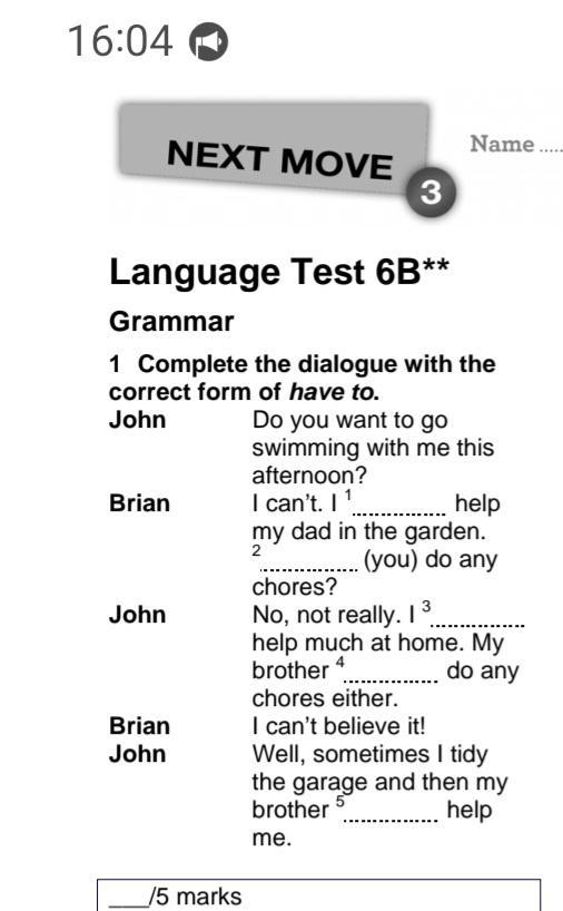 2. Brian: I can't. I have to help my dad in the garden. Do you have to do any chores?