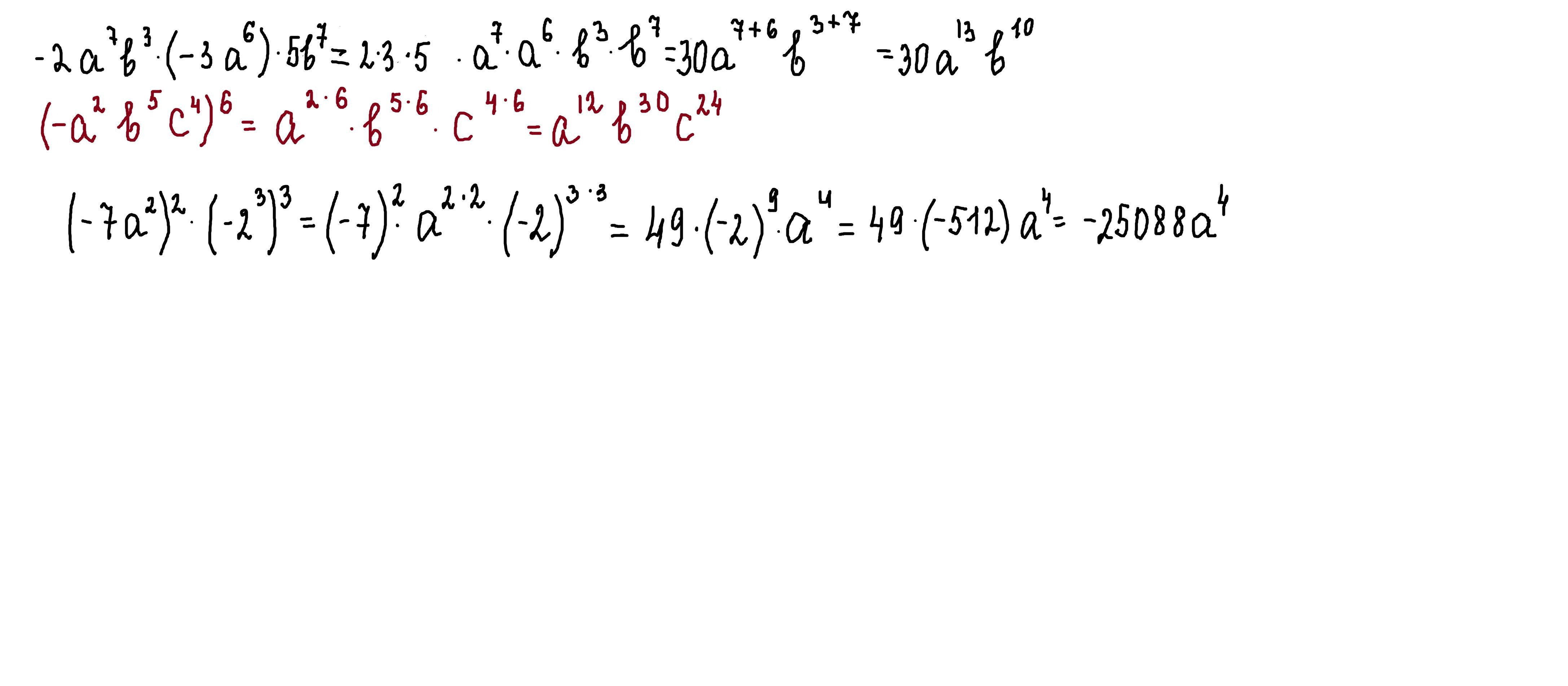 2. Перетвори вираз на одночлен стандартного вигляду. а) -2а⁷б³ • (-3а⁶) • 5б⁷.