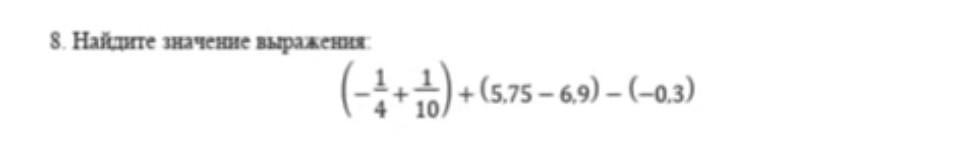 (-1/4+1/10)+(5,75-6,9)-(-0,3)=
