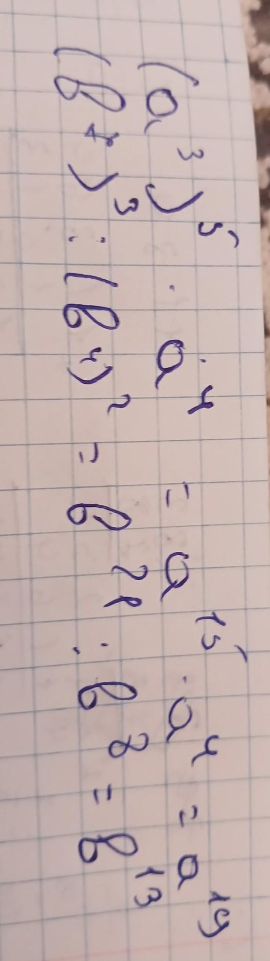 1) (a3)^5 * a^4 = а^15 * а^4 = a^(15+4) = a^19