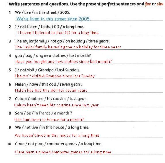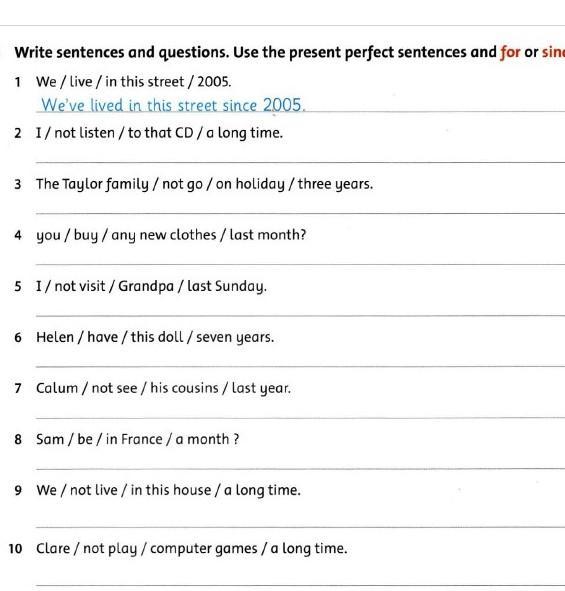 Write sentences and questions. Use the present perfect sentences and for or since.