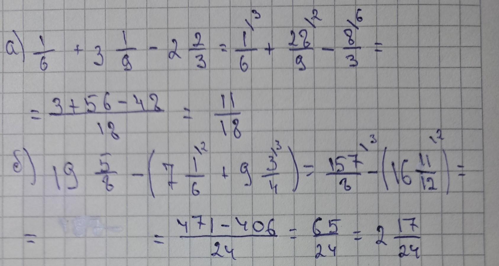 а)1/6+3 1/9-2 2/3=19/6 -17/9 2/3= -5/6