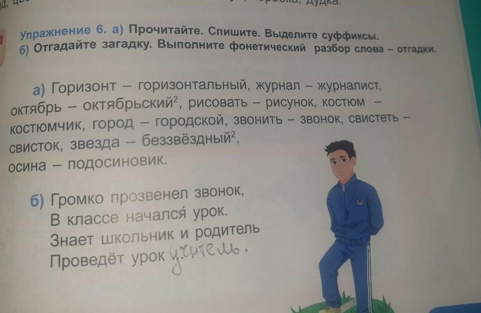 а) Прочитайте. Спишите. Выделите суффиксы.