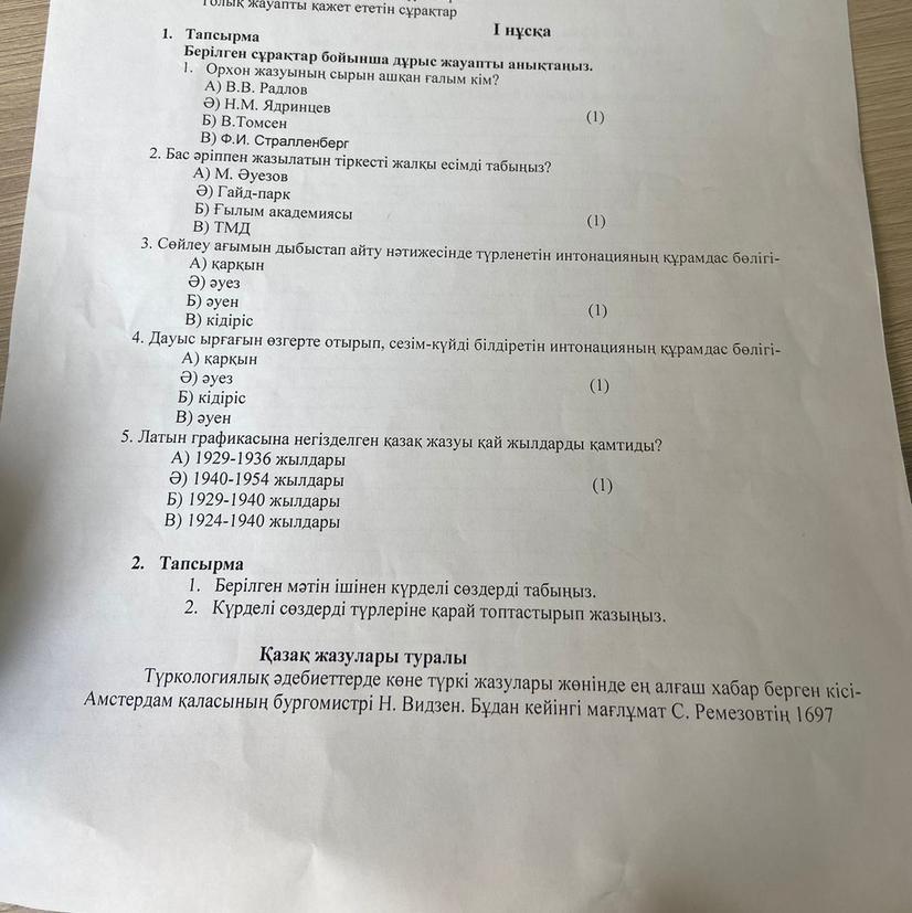 1. Орхон жазуынын сырын ашқан ғалым кім?