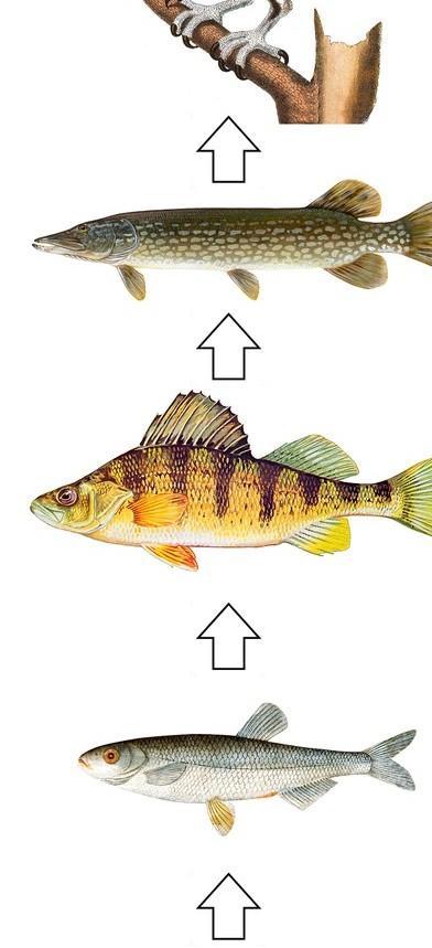 Организмы последующего звена поедают организмы предыдущего звена, и таким образом осуществляется цепной перенос энергии и вещества, лежащий в основе круговорота веществ в природе. При каждом переносе от звена к звену теряется бо́льшая часть (до 80—90 %) потенциальной энергии, рассеивающейся в виде тепла. По этой причине число звеньев (видов) в цепи питания ограничено и обычно не превышает 4—5.