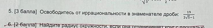 Освободитесь от иррациональности в знаменателе дроби: 12 балла найлите радиус окрок 19