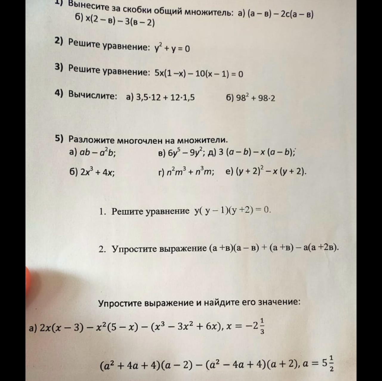 е) (y + 2) - x (y + 2) = (y + 2)(1 - x)