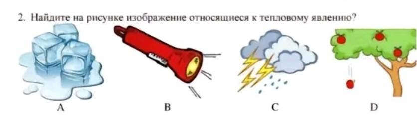 2. Найдите на рисунке изображение относящиеся к тепловому явлению? A B D Е пожалуйста дам 19б