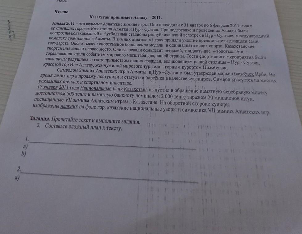 Задания. Прочитайте текст и выполните задания. 2. Составьте сложный план к тексту.