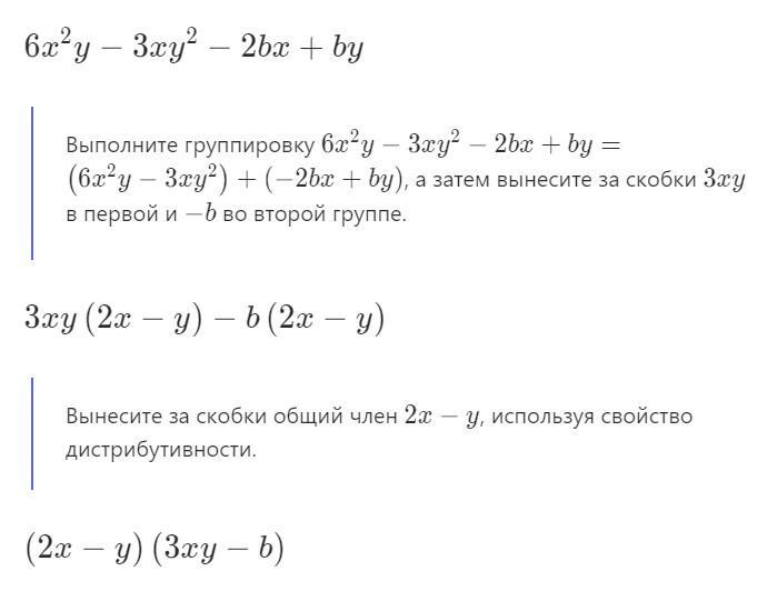 Выполните группировку (6x²y−3xy²) + (-2bx+by),