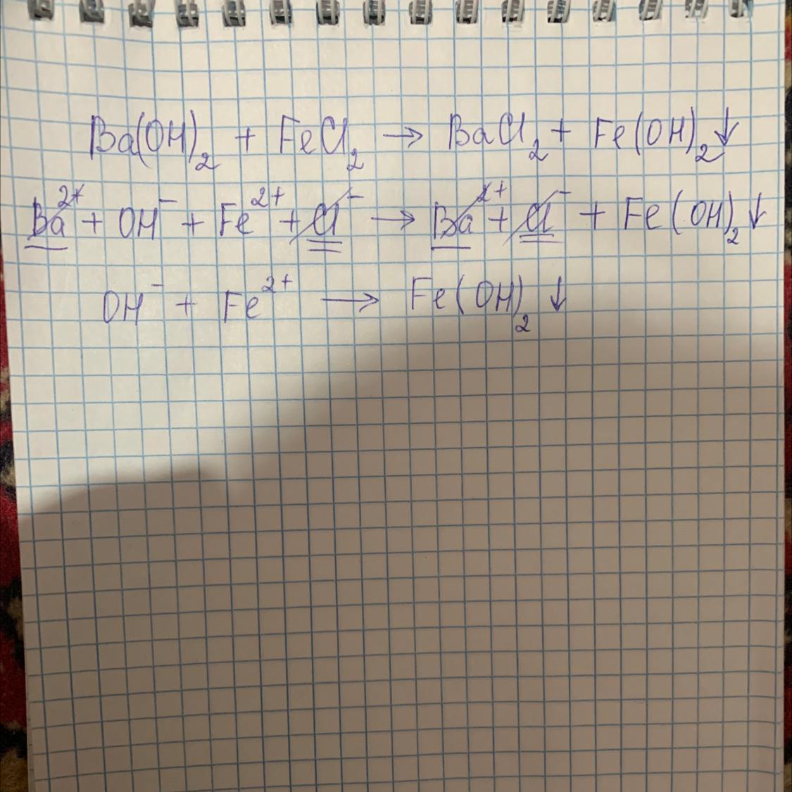 составьте молекулярное,полное и сокращённое ионное уравнение реакций между растворами гидроксид бария и хлорид железа