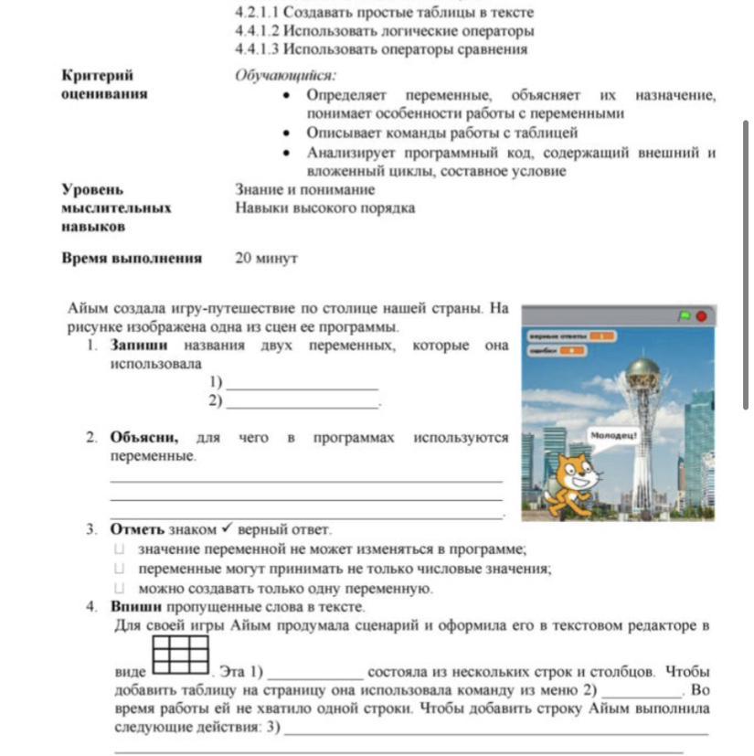 Суммативное оценивание за раздел «Программирование»