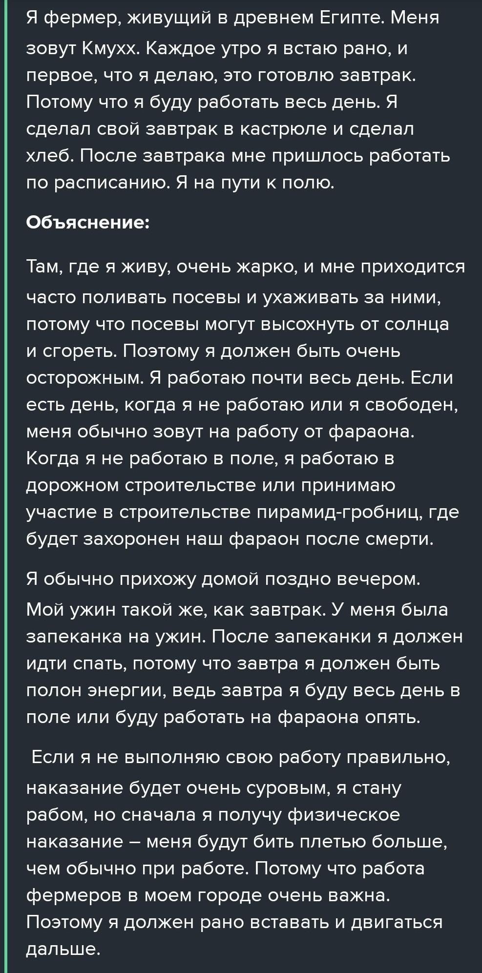 Составьте рассказ от первого лица об одном дне из жизни египтянина на выбор: вельможи, ремесленника, земледельца. СРОЧНО. ДАЮ 15 БАЛЛОВ