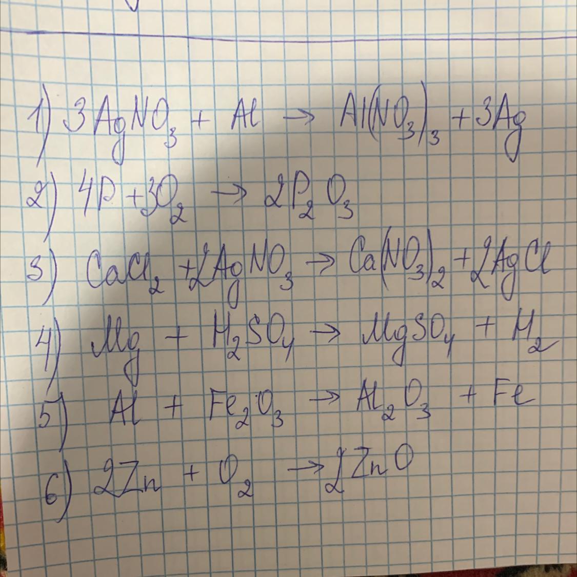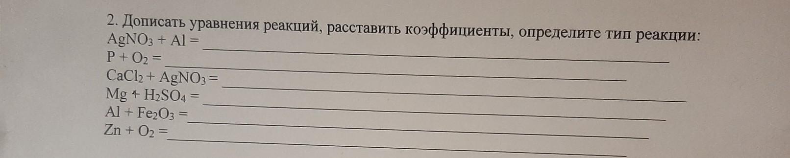 2. Дописать уравнения реакций, расставить коэффициенты, определите тип реакции: