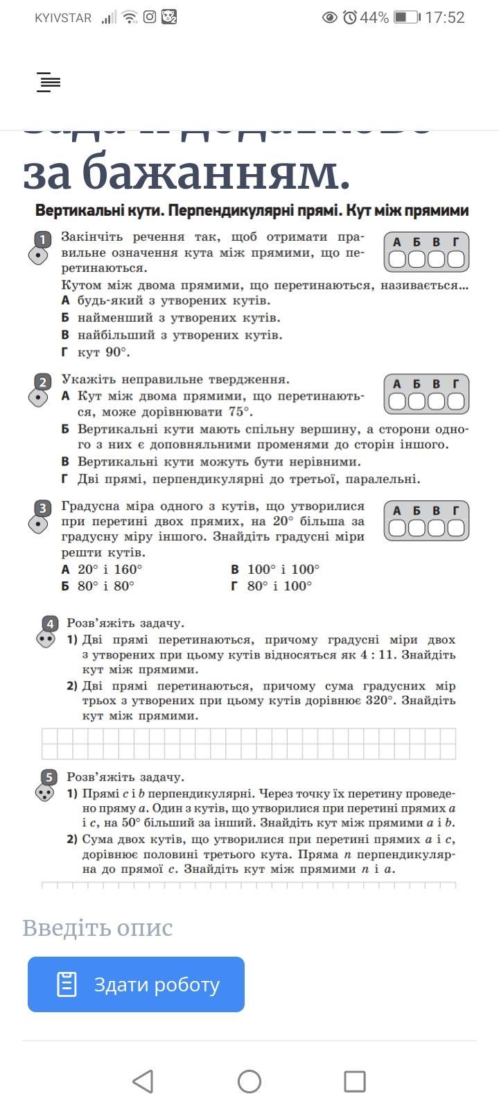 кут між двома перетинающимися прямими – це мірв меньшого з чотирьох кутів, утворених ціми прямими, значить обираємо меньший - 48°