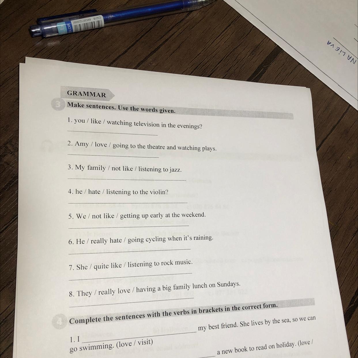 3. My family / not like/ listening to jazz.