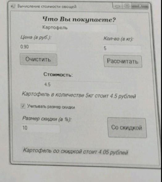 InitWindow(420, 330, 'Вычисление стоимости овощей');