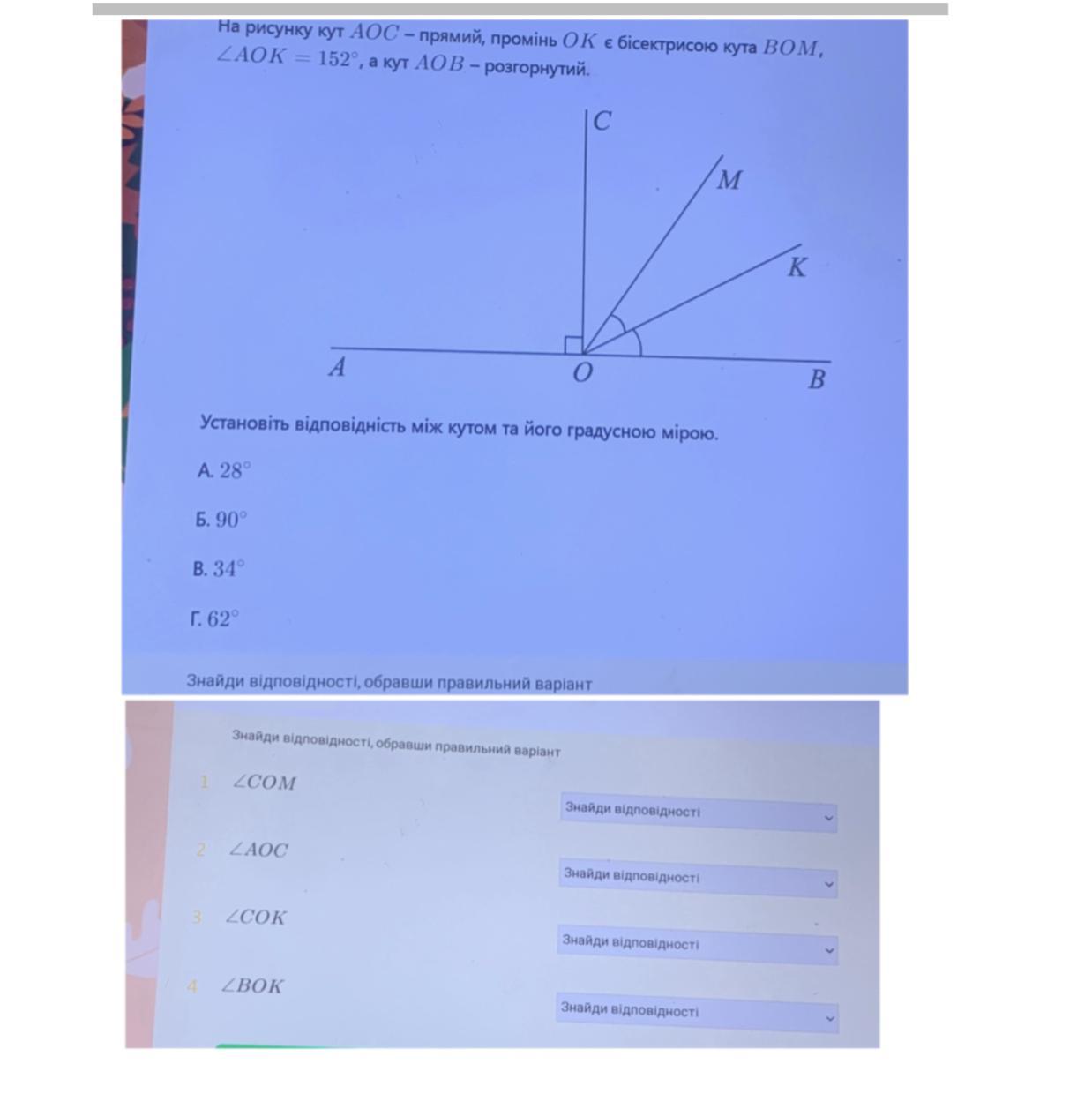 ∠СОК=∠СОМ+∠МОК=34+28=62°
