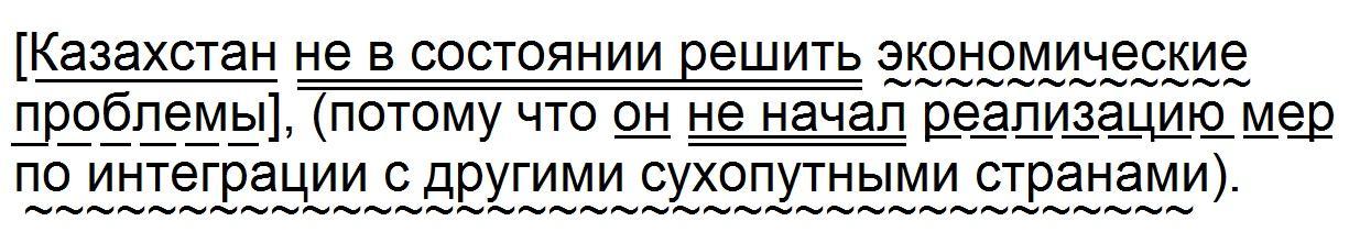 [Казахстан не в состоянии решить экономические проблемы], (потому что он не начал реализацию мер по интеграции с другими сухопутными странами).