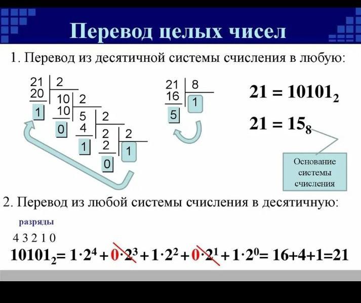 при переводе из 10 ой в люб. делин на нужную , из люб. в десят. умнож