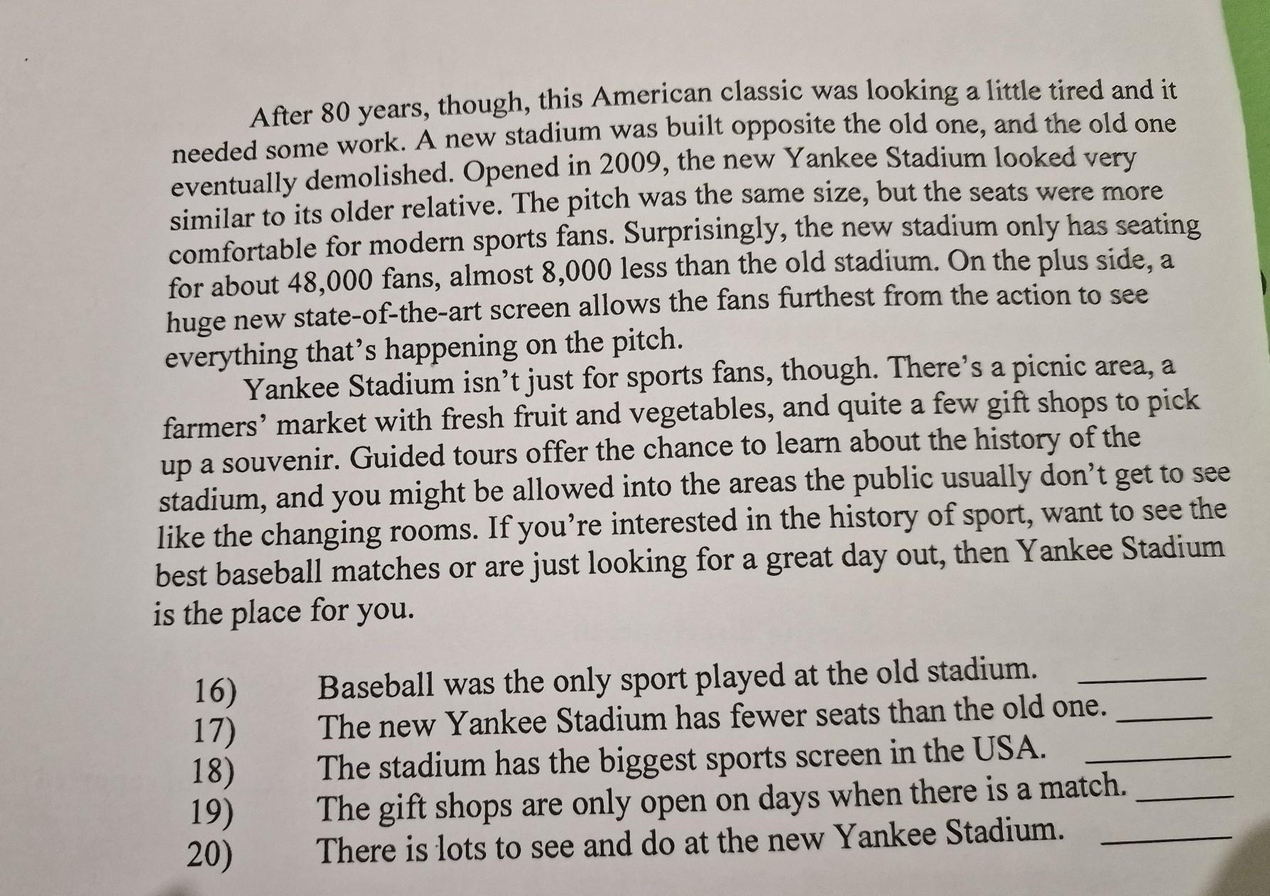 American sport would not be the same without Yankee Stadium. But did you know that there has been not one Yankee Stadium but two? They started building the first one in 1922 and it opened to the public in 192e. Located in the Bronx, an area of New York City, it had seating for over 56,000 spectators. Over the years, the stadium hosted some of the twentieth century's most exciting baseball games, but it also hosted other major sporting events like boxing and football.