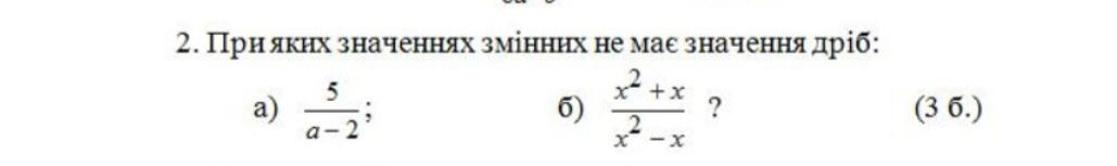 в першому та другому прикладах треба зробити так, щоб дріб не мав значення, це можна досягнути при умові, що знаменник буде рівним нулю.