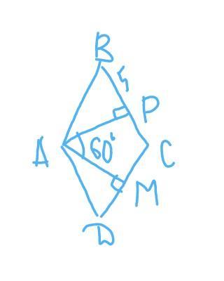 У ромбі АВСД з вершини тупого кута А проведено висоти АМ 1 АР до сторін ДС і ВС відповідно. Знайдіть периметр ромба, якщо ВР = 5