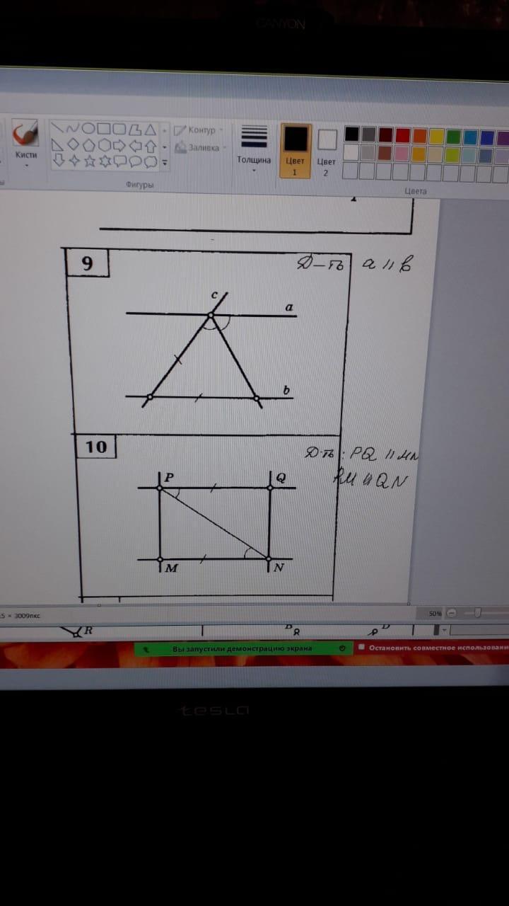 2. На рисунке видим 2 равных треугольника МРТ и MQN по 2 сторонам MN и PQ, PN - общая и углу. Значит равны и углы MPN и PNQ. Отмеченные углы равны: MNP=QPN и являются накрестлежащими между прямыми MN и PQ с секущей PN. Значит эти прямые параллельны. Аналогично накрестлежащими являются равные углы MPN и PNQ с секущей NP. Тогда и прямые PM и QN - Тоже параллельны.