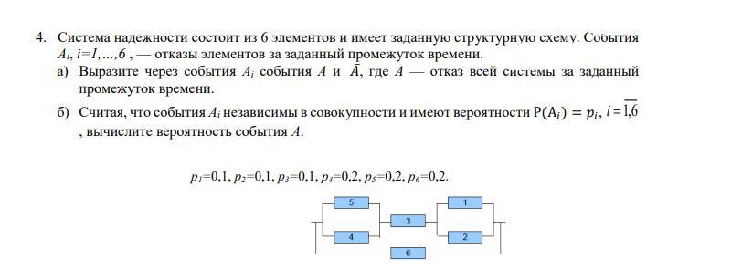 Необходимо найти, с какой вероятностью откажет система, заданная структурной схемой надежности.