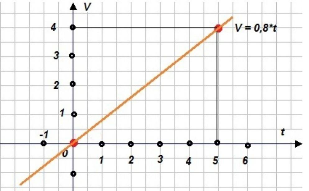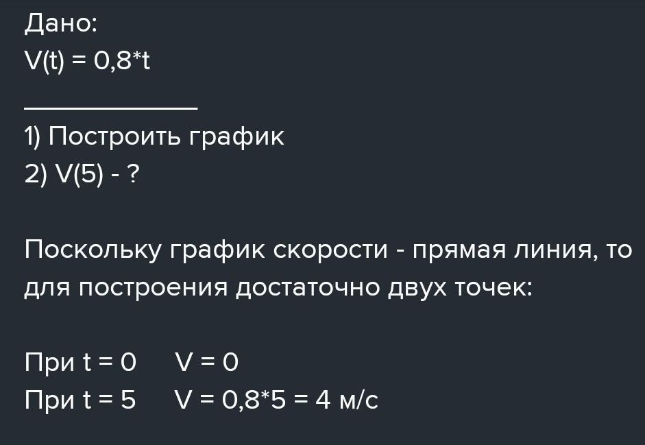 что касаемо графика просто опускаем до 2.5 и пишим V = 0,5*t