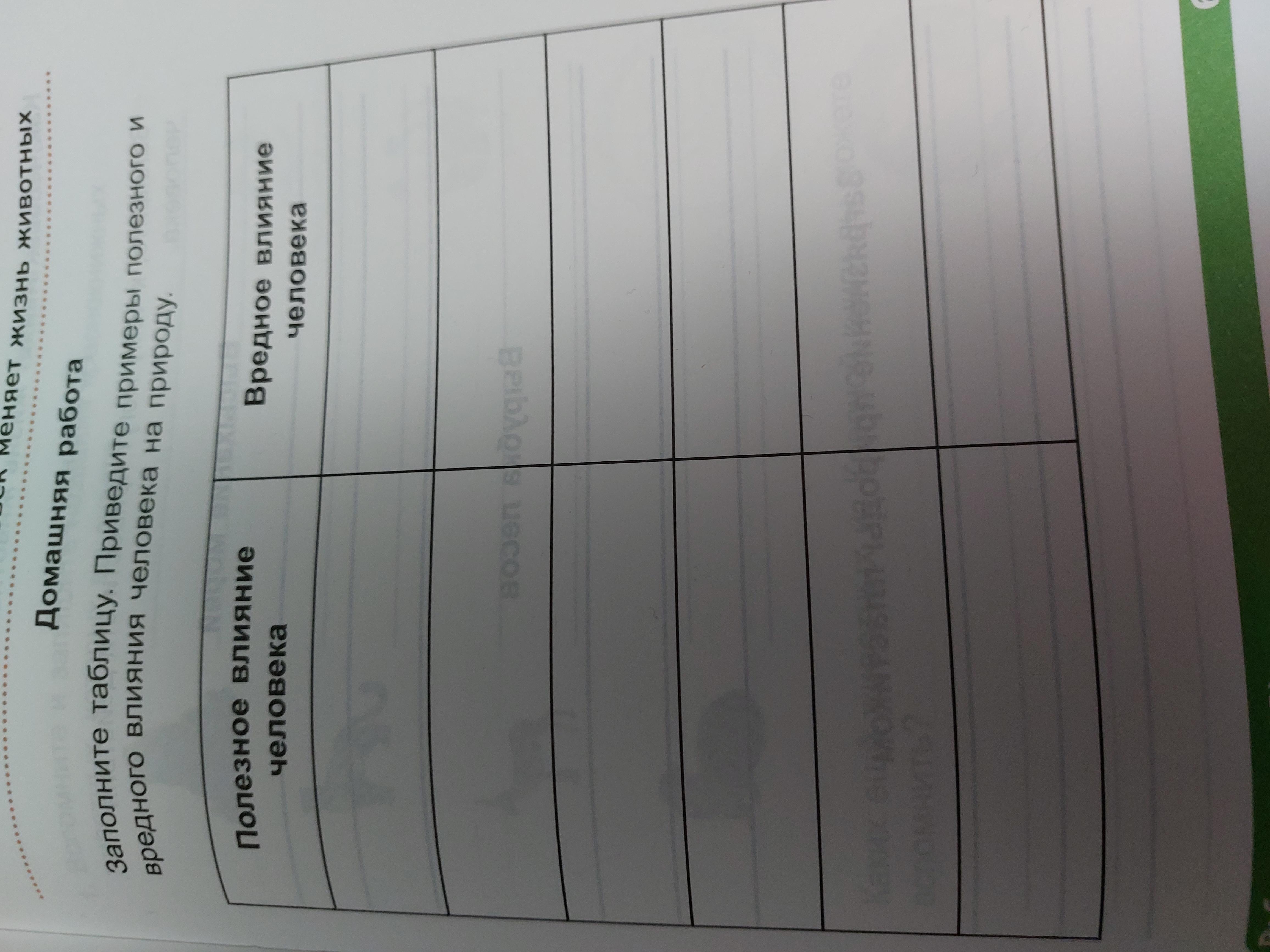 заполните таблицу. Приведите примеры полезного и вредного влияния человека на природу