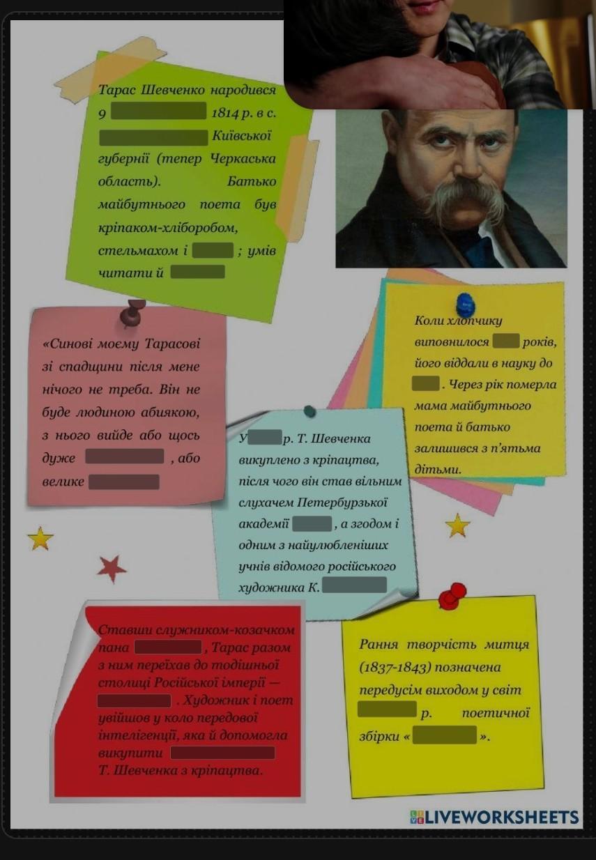 Тарас Шевченко народився 9 березня 1814 р. в с. Моринцях Звенигородського повіту Київської губернії (тепер Черкаська область). Батько майбутнього поета був кріпаком-хліборобом, стельмахом і маляром-іконописцем ; умів читати й писати.
