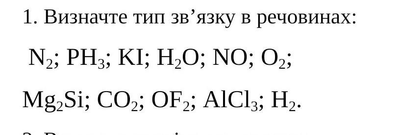 1. N2 - Молекула азоту, містить азотовий (N-N) зв'язок.