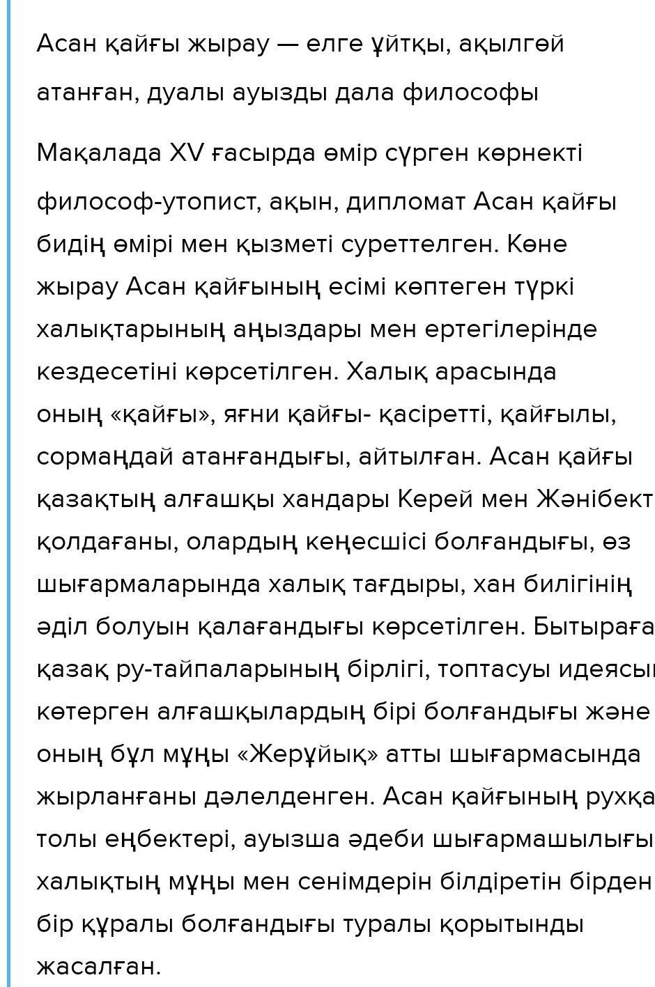 Аныз бойынша Асан кайгынын мiнезiндегi ерекшелiктердi аныктаныз, ойынызды 3-4 сөйлеммен жеткiзiнiз.
