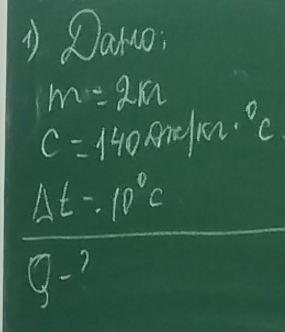 Q=2kg×140Дж/кг×10°C=2800Дж/кг°С