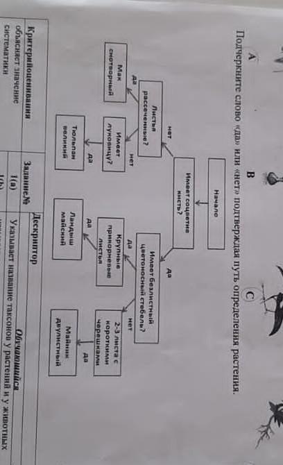 Подчеркните слово «да>> или «нет>> подтверждая путь определення растения.