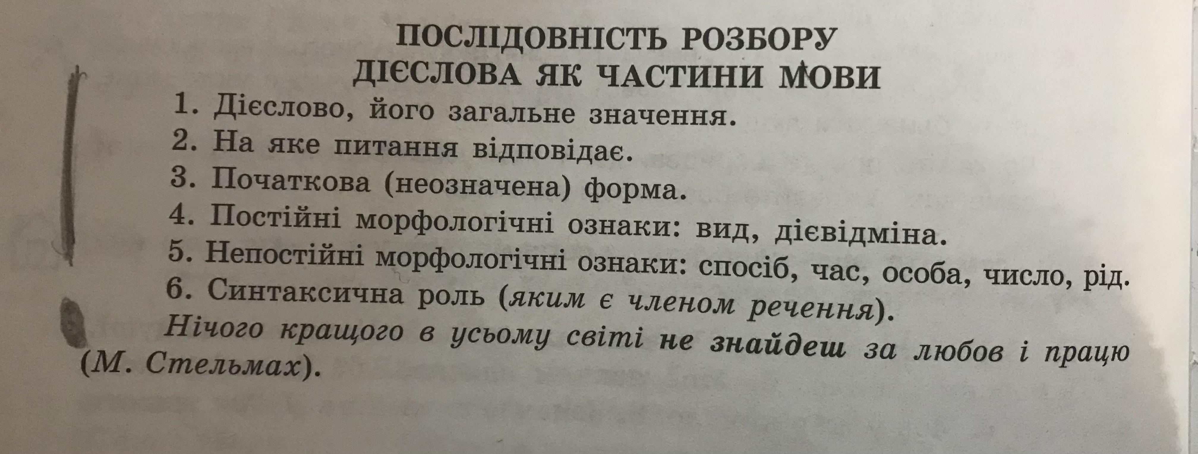 виписати окремо 5 дієслів та, користуючись схемою морфологічного розбору, їх розібрати.