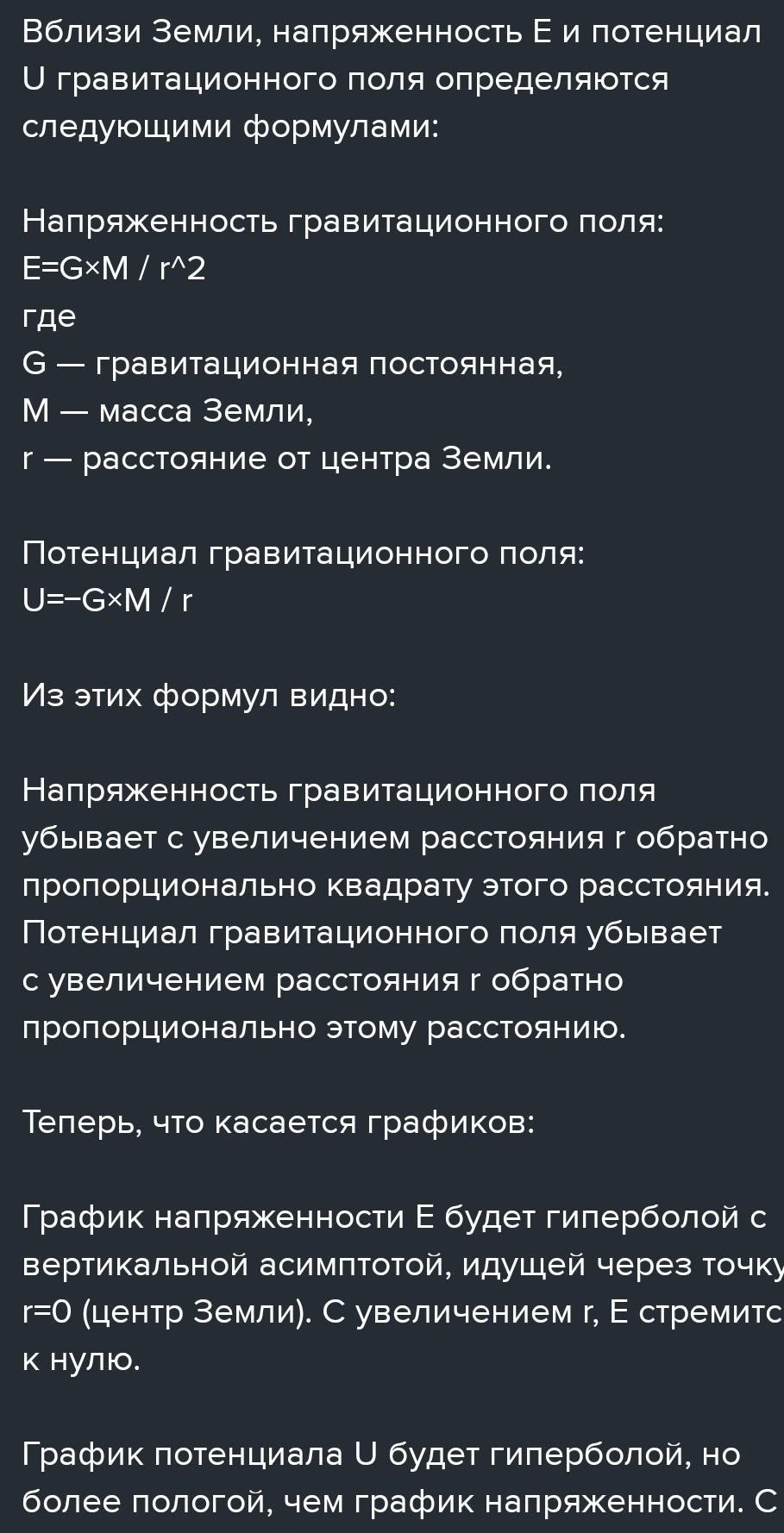 Графическая зависимость напряженности гравитационного поля Земли от расстояния до центра Земли изображена на рисунке. g(h) (h) Г А) Проанализируйте, какова зависимость величины напряженности и потенциала гравитационного поля от расстояния: [2] В) Изобразите график зависимости напряженности гравитационного поля ф от ускорения свободного падения g [4] окружности радиусом 10 см.