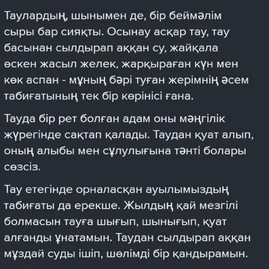 6-тапсырма. «Қала мен ауыл өмірінің тыныс-тіршілігі» тақырыбына шағын мәтін құрастырыңыз. 10 б.